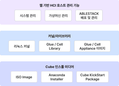 Cube는 ABLESTACK을 구성하는 모든 소프트웨어 패키지와 구성마법사 그리고 웹 기반 호스트 관리플랫폼을 포함하는 Linux 기반 서버 OS 입니다.